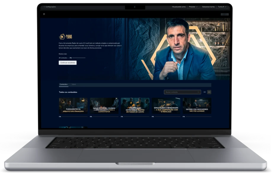 O curso Radar do Lucro é dividido em módulos práticos: