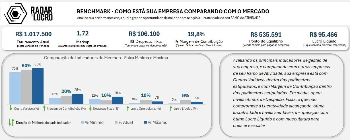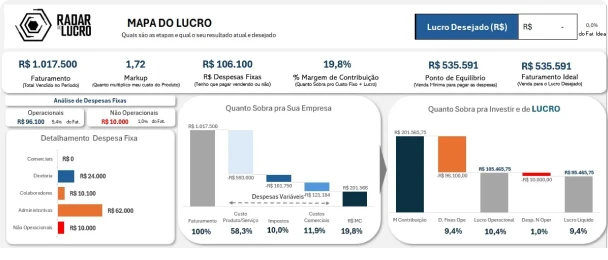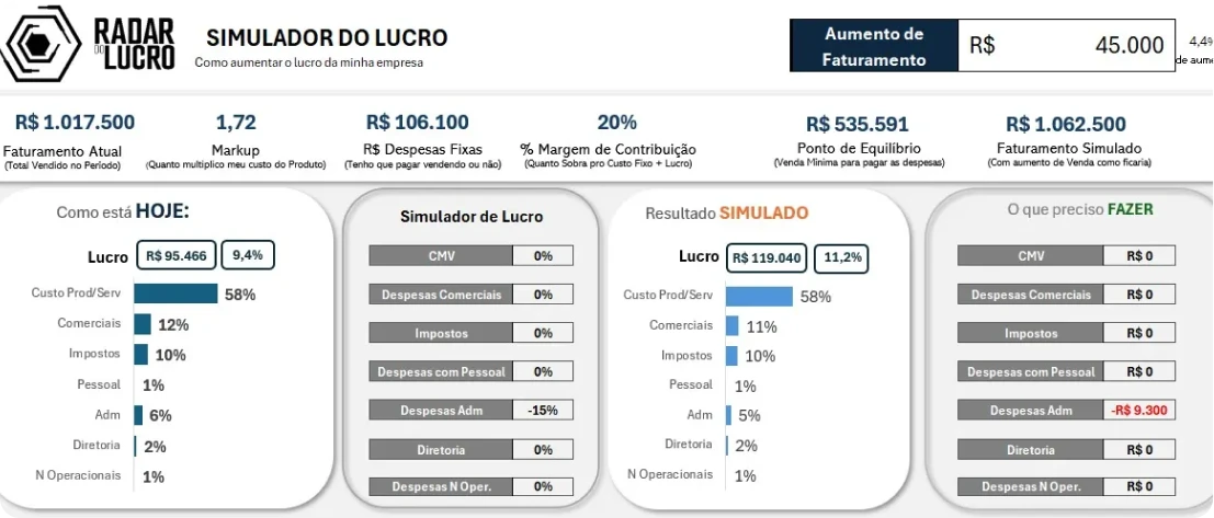🎯 Ferramenta Radar do Lucro 2.0: Ferramenta prática para simular, visualizar e controlar o lucro real da sua empresa — sem fórmulas complicadas.